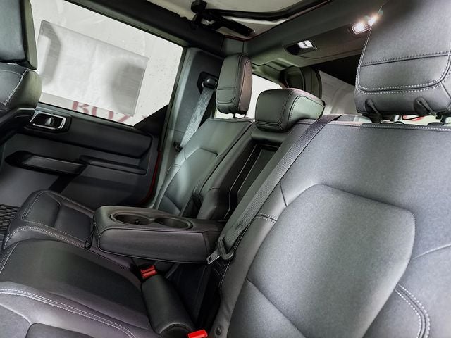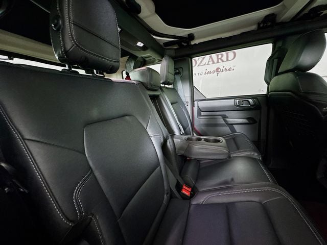 2-Door Intelligent Access w/Lock/Unlock, 4-Wheel Disc Brakes, 7 Speakers, ABS brakes, Air Conditioning, Alloy wheels, AM/FM radio: SiriusXM with 360L, AM/FM Stereo, Ambient Footwell Lighting, Auto High-Beam Headlamps, Auto High-beam Headlights, Auto-dimming Rear-View mirror, BLIS Blind Spot Information System, Body Color-Painted Hard Top, Brake assist, Compass, Connected Navigation, Delay-off headlights, Door Storage Bags, Dr & Pass Illuminated Sliding Visor Vanity Mirrors, Driver door bin, Driver vanity mirror, Dual front impact airbags, Dual front side impact airbags, Dual Smart Charging USB Ports, Dual-Zone Electronic Automatic Temperature Control, Electronic Stability Control, Emergency communication system: 911 Assist, Equipment Group 332A Mid Package, Exterior Parking Camera Rear, Ford Performance Heavy-Duty Modular Front Bumper, Front anti-roll bar, Front Bucket Seats, Front Center Armrest, Front fog lights, Front reading lights, Front Row Heated Seats, Front wheel independent suspension, Fully automatic headlights, Hard Top Sound Deadening Headliner, Heated door mirrors, Heated front seats, Heated steering wheel, High Clearance Fender Flares, High Clearance Suspension, Illuminated entry, Integrated roll-over protection, Internet access capable: FordPass Connect, Lane-Keeping System, Leather Shift Knob, Low tire pressure warning, Marine Grade Vinyl Heated Bucket Seats, Occupant sensing airbag, Outside temperature display, Overhead airbag, Overhead console, Panic alarm, Passenger door bin, Passenger vanity mirror, Position-Sensitive Bilstein Shock Absorbers, Power door mirrors, Power Outlet - Back Side of Center Floor Console, Power steering, Power windows, Pre-Collision Assist w/Automatic Emergency Braking, Radio data system, Rear Parking Sensors, Rear-View Camera, Rear-Window Defroster & Washer, Remote keyless entry, Sasquatch Package, Security system, SiriusXM w/360L, Speed control, Split folding rear seat, Steering wheel mounted audio controls, SYNC 4, Tachometer, Telescoping steering wheel, Tilt steering wheel, Traction control, Trip computer, Variably intermittent wipers, Voltmeter, Wheels: 17 Carbonized Gray Painted Aluminum, Wheels: 17 Carbonized Gray-Painted Aluminum.
