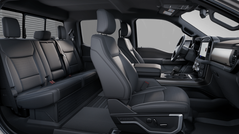4WD, 4 Pickup Box Tie-Down Plates, 4-Wheel Disc Brakes, 4x4 FX4 Off-Road Bodyside Decal, 6 Angular Bright Anodized Step Bar, 6 Extended Running Boards, 8 Speakers, ABS brakes, ActiveX Trimmed Bucket Seats, Adjustable pedals, Air Conditioning, Alloy wheels, AM/FM radio: SiriusXM with 360L, Auto High-beam Headlights, Auto-dimming door mirrors, Auto-dimming Rear-View mirror, Automatic temperature control, Bed Utility Package, Brake assist, Bumpers: chrome, Chrome wheels, Compass, Console Worksurface, Delay-off headlights, Driver door bin, Driver vanity mirror, Dual front impact airbags, Dual front side impact airbags, Electronic Stability Control, Emergency communication system: SYNC 4 911 Assist, Equipment Group 501A Mid, Front anti-roll bar, Front Bucket Seats, Front Center Armrest, Front dual zone A/C, Front fog lights, Front reading lights, Front wheel independent suspension, Fully automatic headlights, FX4 Off-Road Package, Garage door transmitter, Heated door mirrors, Heated front seats, Heated steering wheel, Hill Descent Control, Illuminated Driver & Passenger Visors, Illuminated entry, Internet access capable: FordPass Connect 5G, LED Box Lighting, Low tire pressure warning, Memory seat, Mobile Office Package, Monotube Rear Shocks, Navigation system: Connected Navigation, Occupant sensing airbag, Off-Road Tuned Front Shock Absorbers, Outside temperature display, Overhead airbag, Overhead console, Panic alarm, Partitioned Lockable Rear Storage, Passenger door bin, Passenger vanity mirror, Pedal memory, Power door mirrors, Power driver seat, Power passenger seat, Power steering, Power Tailgate, Power windows, Power-Sliding Rear Window, Pro Access Tailgate, Radio data system, Radio: B&O Sound System by Bang & Olufsen, Rain sensing wipers, Rear reading lights, Rear seat center armrest, Rear step bumper, Rear window defroster, Remote keyless entry, Rock Crawl Mode, Security system, Speed control, Split folding rear seat, Steering wheel mounted audio controls, SYNC 4 w/Enhanced Voice Recognition, Tachometer, Telescoping steering wheel, Tilt steering wheel, Tow/Haul Package, Traction control, Tray Style Floor Liner w/o Carpet Mats, Trip computer, Turn signal indicator mirrors, Variably intermittent wipers, Ventilated front seats, Voltmeter, Wheel Well Liner, Wheels: 18 Chrome-Like PVD, Wheels: 20 Chrome-Like PVD, Wireless Charging, 4WD.