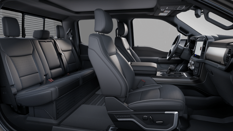4WD, 2nd Row Heated Seats, 4 Pickup Box Tie-Down Plates, 4-Wheel Disc Brakes, 4x4 FX4 Off-Road Bodyside Decal, 6 Extended Running Boards, 8 Speakers, ABS brakes, ActiveX Trimmed Bucket Seats, Adjustable pedals, Air Conditioning, Alloy wheels, AM/FM radio: SiriusXM with 360L, Ambient Lighting - Ice Blue Color Only, Auto High-beam Headlights, Auto-dimming door mirrors, Auto-dimming Rear-View mirror, Automatic temperature control, Bed Utility Package, Brake assist, Bumpers: chrome, Chrome wheels, Compass, Console Worksurface, Delay-off headlights, Driver door bin, Driver vanity mirror, Dual front impact airbags, Dual front side impact airbags, Electronic Stability Control, Emergency communication system: SYNC 4 911 Assist, Equipment Group 502A High, Front anti-roll bar, Front Bucket Seats, Front Center Armrest, Front dual zone A/C, Front fog lights, Front reading lights, Front wheel independent suspension, Fully automatic headlights, FX4 Off-Road Package, Garage door transmitter, Heads-Up Display, Heated door mirrors, Heated front seats, Heated steering wheel, Hill Descent Control, Illuminated Driver & Passenger Visors, Illuminated entry, Internet access capable: FordPass Connect 5G, LED Box Lighting, Low tire pressure warning, Memory seat, Mobile Office Package, Monotube Rear Shocks, Navigation system: Connected Navigation, Occupant sensing airbag, Off-Road Tuned Front Shock Absorbers, Outside temperature display, Overhead airbag, Overhead console, Panic alarm, Partitioned Lockable Rear Storage, Passenger door bin, Passenger vanity mirror, Pedal memory, Power door mirrors, Power driver seat, Power passenger seat, Power steering, Power Tailgate, Power windows, Power-Sliding Rear Window, Pro Access Tailgate, Radio data system, Radio: B&O Sound System by Bang & Olufsen, Radio: B&O Unleashed Sound System by Bang & Olufsen, Rain sensing wipers, Rear reading lights, Rear seat center armrest, Rear step bumper, Rear window defroster, Remote keyless entry, Rock Crawl Mode, Security system, Speed control, Split folding rear seat, Steering wheel mounted audio controls, SYNC 4 w/Enhanced Voice Recognition, Tachometer, Telescoping steering wheel, Tilt steering wheel, Tow/Haul Package, Traction control, Tray Style Floor Liner w/o Carpet Mats, Trip computer, Turn signal indicator mirrors, Twin Panel Moonroof, Variably intermittent wipers, Ventilated front seats, Voltmeter, Wheel Well Liner, Wheels: 18 Chrome-Like PVD, Wheels: 20 Chrome-Like PVD, Wireless Charging, 4WD.