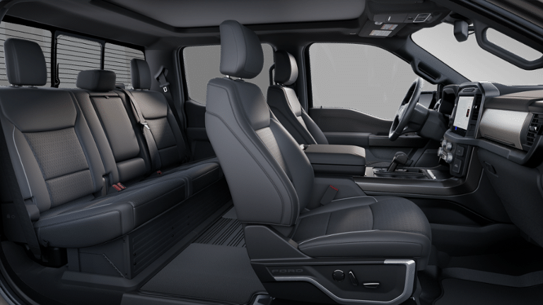 4WD, 4-Wheel Disc Brakes, 4x4 FX4 Off-Road Bodyside Decal, 6 Angular Bright Anodized Step Bar, 8 Speakers, ABS brakes, ActiveX Trimmed Bucket Seats, Adjustable pedals, Air Conditioning, Alloy wheels, AM/FM radio: SiriusXM with 360L, Auto High-beam Headlights, Auto-dimming door mirrors, Auto-dimming Rear-View mirror, Automatic temperature control, Brake assist, Bumpers: chrome, Chrome wheels, Compass, Console Worksurface, Delay-off headlights, Driver door bin, Driver vanity mirror, Dual front impact airbags, Dual front side impact airbags, Electronic Stability Control, Emergency communication system: SYNC 4 911 Assist, Equipment Group 501A Mid, Front anti-roll bar, Front Bucket Seats, Front Center Armrest, Front dual zone A/C, Front fog lights, Front reading lights, Front wheel independent suspension, Fully automatic headlights, FX4 Off-Road Package, Garage door transmitter, Heated door mirrors, Heated front seats, Heated steering wheel, Hill Descent Control, Illuminated Driver & Passenger Visors, Illuminated entry, Internet access capable: FordPass Connect 5G, Low tire pressure warning, Memory seat, Mobile Office Package, Monotube Rear Shocks, Navigation system: Connected Navigation, Occupant sensing airbag, Off-Road Tuned Front Shock Absorbers, Outside temperature display, Overhead airbag, Overhead console, Panic alarm, Partitioned Lockable Rear Storage, Passenger door bin, Passenger vanity mirror, Pedal memory, Power door mirrors, Power driver seat, Power passenger seat, Power steering, Power windows, Power-Sliding Rear Window, Radio data system, Radio: B&O Sound System by Bang & Olufsen, Rain sensing wipers, Rear reading lights, Rear seat center armrest, Rear step bumper, Rear window defroster, Remote keyless entry, Rock Crawl Mode, Security system, Speed control, Split folding rear seat, Steering wheel mounted audio controls, SYNC 4 w/Enhanced Voice Recognition, Tachometer, Telescoping steering wheel, Tilt steering wheel, Tow/Haul Package, Traction control, Tray Style Floor Liner w/o Carpet Mats, Trip computer, Turn signal indicator mirrors, Twin Panel Moonroof, Variably intermittent wipers, Ventilated front seats, Voltmeter, Wheels: 18 Chrome-Like PVD, Wheels: 20 Chrome-Like PVD, Wireless Charging, 4WD.