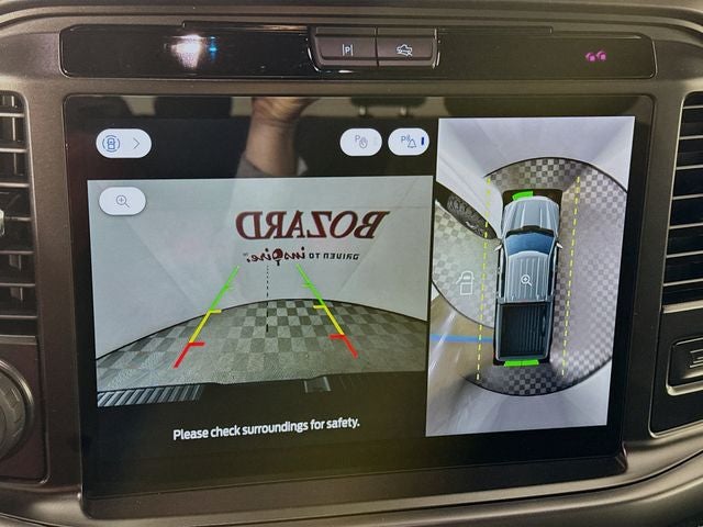 4WD, 4 Pickup Box Tie-Down Plates, 4-Wheel Disc Brakes, 8 Speakers, ABS brakes, Adjustable pedals, Air Conditioning, Alloy wheels, AM/FM radio: SiriusXM with 360L, Auto High-beam Headlights, Auto-dimming door mirrors, Auto-dimming Rear-View mirror, Automatic temperature control, Bed Utility Package, BlueCruise Equipped (1-Year Plan), Brake assist, Bumpers: body-color, Compass, Console Worksurface, Delay-off headlights, Driver door bin, Driver vanity mirror, Dual front impact airbags, Dual front side impact airbags, Electronic Locking w/3.73 Axle Ratio, Electronic Stability Control, Emergency communication system: SYNC 4 911 Assist, Equipment Group 401A Standard, Front anti-roll bar, Front Bucket Seats, Front Center Armrest, Front dual zone A/C, Front fog lights, Front License Plate Bracket, Front reading lights, Front wheel independent suspension, Fully automatic headlights, GVWR: 7,100 lbs Payload Package, Heated door mirrors, Heated front seats, Illuminated entry, Integrated Trailer Brake Controller, Internet access capable: FordPass Connect 5G, LED Box Lighting, Low tire pressure warning, Mobile Office Package, Navigation system: Connected Navigation, Occupant sensing airbag, Outside temperature display, Overhead airbag, Overhead console, Panic alarm, Partitioned Lockable Rear Storage, Passenger door bin, Passenger vanity mirror, Power door mirrors, Power driver seat, Power passenger seat, Power steering, Power Tailgate, Power windows, Radio data system, Radio: B&O Sound System by Bang & Olufsen, Rear reading lights, Rear step bumper, Rear window defroster, Remote keyless entry, Security system, Speed control, Split folding rear seat, Steering wheel mounted audio controls, SYNC 4 w/Enhanced Voice Recognition, Tachometer, Tailgate Step w/Tailgate Work Surface, Telescoping steering wheel, Tilt steering wheel, Tow/Haul Package, Traction control, Trip computer, Turn signal indicator mirrors, Unique Sport Cloth 40/Console/40 Power Front Seat, Variably intermittent wipers, Voltmeter, Wheels: 18 Alloy w/Dark Matte Finish, Wireless Charging, 4WD.