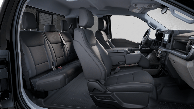 4WD, 120V/400W Outlet, 17 Argent Painted Steel Wheels, 360-Degree Camera, 360-Degree Camera Package, 4-Wheel Disc Brakes, 410 Amp Dual Alternators, 6 Speakers, ABS brakes, Air Conditioning, AM/FM radio, AM/FM Stereo w/MP3 Player, Automatic High Beam, BLIS w/Cross-Traffic Alert, Body-Color Front Bumper, Body-Color Rear Bumper, Brake assist, Cloth 40/20/40 Split Bench Seat, Color-Coordinated Full Carpet w/Floor Mats, Compass, Delay-off headlights, Dual AGM 68 AH Battery, Dual front impact airbags, Dual front side impact airbags, Electronic Stability Control, Emergency communication system: SYNC 4 911 Assist, Engine Block Heater, Exterior Parking Camera Rear, F-250 >10K GVWR Package, Front anti-roll bar, Front Center Armrest w/Storage, Front License Plate Bracket, Front reading lights, Fully automatic headlights, FX4 Off-Road Package, GVWR: 10,000 lb Payload Package, HD Vinyl 40/20/40 Split Bench Seat, Heated door mirrors, High Capacity 11.6 Axle Upgrade Package, Hill Descent Control, Illuminated entry, Interior Work Surface, Internet access capable: FordPass Connect 5G, LED Box Lighting, LED Center High-Mounted Stop Lamp (CHMSL) Camera, LED Fog Lamps, Low tire pressure warning, Off-Road Specifically Tuned Shock Absorbers, Onboard Scales & Smart Hitch, Order Code 600A, Outside temperature display, Overhead airbag, Overhead console, Painted Grille, Panic alarm, Passenger cancellable airbag, Passenger vanity mirror, Platform Running Boards, Power door mirrors, Power steering, Power windows, Power-Sliding Rear-Window w/Defrost, Pre-Collision Assist, Privacy Glass, Rapid-Heat Supplemental Cab Heater, Rear Parking Sensors, Rear step bumper, Remote keyless entry, Remote Start System, Security system, Speed control, Split folding rear seat, Steering wheel mounted audio controls, STX Appearance Package, SYNC 4, Tachometer, Tailgate Step & Handle, Telescoping steering wheel, Tilt steering wheel, Traction control, Trip computer, Turn signal indicator mirrors, Unique FX4 Off-Road Box Decal, Upfitter Switches (6), Variably intermittent wipers, Wheels: 18 Ebony Black Painted Aluminum, XL Driver Assist Package, 4WD.