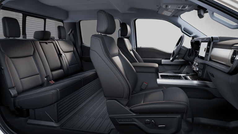 4WD, 190 Amp Alternator, 4-Way Adjustable Headrests, 4-Wheel Disc Brakes, 6 Ebony Black Angular Running Boards, 8 Speakers, ABS brakes, Adaptive Cruise Control with Stop-and-Go, Adjustable pedals, Air Conditioning, All-Weather Floor Mats, Alloy wheels, AM/FM radio: SiriusXM with 360L, Auto High-beam Headlights, Auto-dimming Rear-View mirror, Automatic High Beam, Automatic temperature control, Black Appearance Package, Black Painted Front Grille Surround, BLIS with Cross-Traffic Alert, Body Color Front and Rear Bumpers, Brake assist, Bumpers: chrome, Compass, Delay-off headlights, Driver door bin, Driver vanity mirror, Dual AGM 68 AH Battery, Dual front impact airbags, Dual front side impact airbags, Ebony Black Painted Mirror Caps, Electronic Stability Control, Emergency communication system: SYNC 4 911 Assist, Flow-Through Console, Front ActiveX Trimmed 40/Console/40 Seats, Front and Rear Parking Sensors, Front anti-roll bar, Front Bucket Seats, Front Center Armrest, Front dual zone A/C, Front fog lights, Front License Plate Bracket, Front reading lights, Fully automatic headlights, FX4 Off-Road Package, Garage door transmitter, Head-Up Display, Heated door mirrors, Heated front seats, Heated rear seats, Heated steering wheel, Hill Descent Control, Illuminated entry, Internet access capable: FordPass Connect 5G, Lane-Keeping System, Lariat Ultimate Package, LED Roof Clearance Lights, Low tire pressure warning, Memory seat, Navigation System, Off-Road Specifically Tuned Shock Absorbers, Order Code 618A, Outside temperature display, Overhead airbag, Overhead console, Panic alarm, Passenger door bin, Passenger vanity mirror, Pedal memory, Post-Collision Braking, Power door mirrors, Power driver seat, Power passenger seat, Power steering, Power windows, Power-Deployable Running Boards, Power-Sliding Rear-Window with Defrost, Pre-Collision Assist, Privacy Glass, Pro Trailer Backup Assist, Pro Trailer Hitch Assist, Radio: B&O Sound System by Bang and Olufsen, Radio: B&O Unleashed Sound System by Bang & Olufsen, Rain sensing wipers, Rear Parking Sensors, Rear reading lights, Rear seat center armrest, Rear step bumper, Rear window defroster, Remote keyless entry, Security system, SiriusXM Radio with 360L, Speed control, Split folding rear seat, Steering wheel mounted audio controls, SYNC 4 with Enhanced Voice Recognition, Tachometer, Tailgate Step and Handle, Telescoping steering wheel, Tilt steering wheel, Traction control, Trip computer, Turn signal indicator mirrors, Unique FX4 Off-Road Box Decal, Upfitter Switches (6), Variably intermittent wipers, Ventilated front seats, Wheels: 18 Bright Machined and Carbonized Gray Aluminum, 4WD.