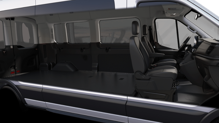 2-Passenger Seats w/Add. Rear Seat Attachment Points, 3.73 Limited-Slip Axle Ratio, 360-Degree Camera w/Split View, 3rd row seats: split-bench, 4-Wheel Disc Brakes, 4th-Row Bench Seat, 8 Speakers, ABS brakes, Adaptive Cruise Control, Air Conditioning, AM/FM radio, Auto High-beam Headlights, Auxiliary Fuse Panel, Back Up Alarm, Brake assist, Builder's Prep Package, Cloth Front Bucket Seats, Dark Palazzo Gray Cloth Bucket Seats, Delay-off headlights, Driver door bin, Driver vanity mirror, Driver's Seat Mounted Armrest, Dual AGM Batteries (70 Amp-hr Each), Dual front impact airbags, Dual front side impact airbags, Electronic Air Temperature Control, Electronic Stability Control, Frame Mounted Hitch Receiver, Front All-Weather Floor Mats, Front anti-roll bar, Front Black Wheel Well Liners, Front Bucket Seats, Front Fog Lamps, Front License Plate Bracket, Front Overhead Shelf, Front reading lights, Front Sensing System, Front wheel independent suspension, Fully automatic headlights, Heavy-Duty Trailer Tow Package, Honeycomb Mesh Grille w/Chrome Surround, Illuminated entry, Internet access capable: FordPass Connect 4G, Keyless Entry Keypad, Large Center Console, Low tire pressure warning, Midship Extended Range Fuel Tank (31 Gallons), Modified Vehicle Wiring System, Occupant sensing airbag, Overhead airbag, Panic alarm, Passenger door bin, Passenger Running Board, Passenger seat mounted armrest, Passenger vanity mirror, Power door mirrors, Power steering, Power windows, Privacy Glass, Radio: AM/FM Stereo w/SYNC 4 & Nav, Rain sensing wipers, Rear air conditioning, Rear window defroster, Rear-Window Defroster, Remote keyless entry, Remote Start, Reverse Sensing System, Side Sensing System, Speed control, Steering wheel mounted audio controls, Tachometer, Telescoping steering wheel, Tilt steering wheel, Tow/Haul Mode w/Trailer Wiring Prov, Traction control, Upfitter Package, Variably intermittent wipers, Wheels: 16 Matte Black Alloy, Wheels: 16 Silver Steel w/Exposed Lug Nuts.