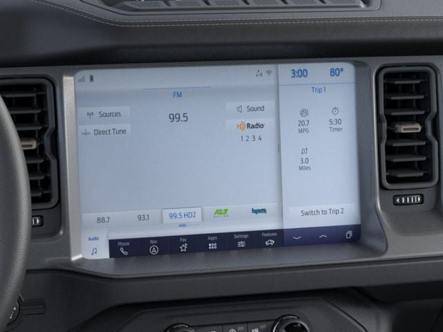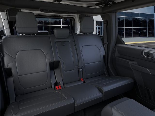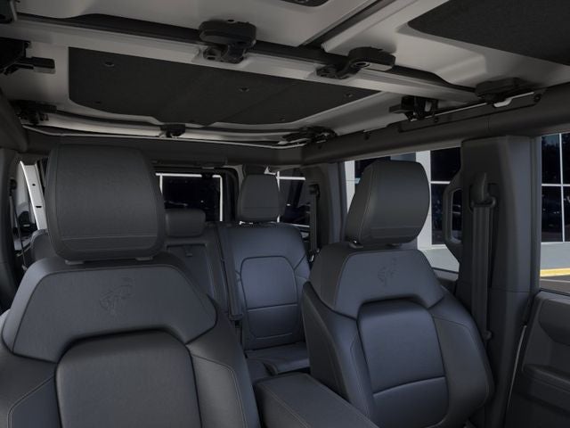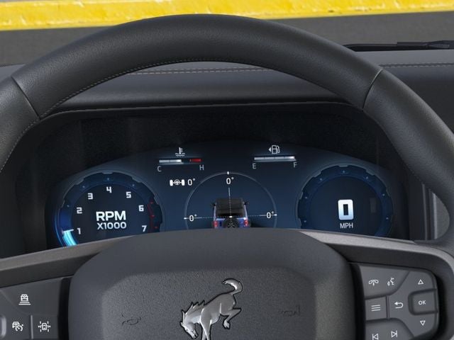 2-Door Intelligent Access with Lock/Unlock, 360-Degree Camera, 4-Wheel Disc Brakes, 4.7 Axle Ratio, 7 Speakers, ABS brakes, Adaptive Cruise Control, Air Conditioning, Alloy wheels, AM/FM radio: SiriusXM with 360L, AM/FM Stereo, Ambient Footwell Lighting, Auto High-Beam Headlamps, Auto High-beam Headlights, Auto-dimming Rear-View mirror, BLIS Blind Spot Information System, Brake assist, Compass, Connected Navigation, Delay-off headlights, Driver and Front Passenger Illuminated Sliding Visor Vanity Mirrors, Driver door bin, Driver vanity mirror, Dual front impact airbags, Dual front side impact airbags, Dual Smart Charging USB Ports, Dual-Zone Electronic Automatic Temperature Control, Electronic Stability Control, Emergency communication system: 911 Assist, Equipment Group 334A Lux Package, Evasive Steering Assist, Exterior Parking Camera Rear, Ford Connectivity Package (1-Year Included), Front anti-roll bar, Front Bucket Seats, Front Center Armrest, Front fog lights, Front Parking Sensors, Front reading lights, Front Row Heated Seats, Front wheel independent suspension, Fully automatic headlights, Hard Top Sound Deadening Headliner, Heated door mirrors, Heated front seats, Heated Steering Wheel, Illuminated entry, Information on Demand Panel, Integrated roll-over protection, Lane-Keeping System, Leather Shift Knob, Low tire pressure warning, Marine Grade Vinyl Heated Bucket Seats, Occupant sensing airbag, Outside temperature display, Overhead airbag, Overhead console, Panic alarm, Passenger door bin, Passenger vanity mirror, Power door mirrors, Power steering, Power windows, Pre-Collision Assist with Automatic Emergency Braking, Pro Power Onboard - 400W, Radio data system, Rear Parking Sensors, Rear-View Camera, Rear-Window Defroster and Washer, Remote keyless entry, Security system, Shadow Black Painted Hard Top, Sideview Mirrors, SiriusXM with 360L, Speed control, Split folding rear seat, Steering wheel mounted audio controls, SYNC 4, Tachometer, Telescoping steering wheel, Tilt steering wheel, Traction control, Trip computer, Variably intermittent wipers, Voltmeter, Wheels: 17 Carbonized Gray-Painted Aluminum.
