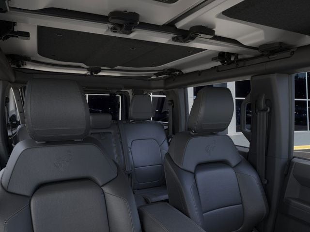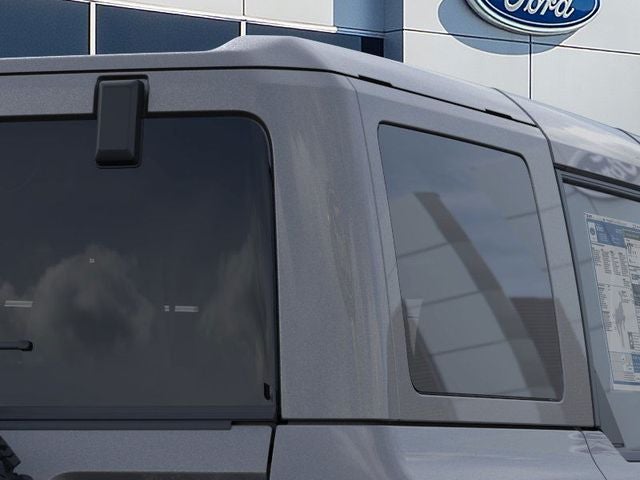 2-Door Intelligent Access with Lock/Unlock, 360-Degree Camera, 4-Wheel Disc Brakes, 4.7 Axle Ratio, 7 Speakers, ABS brakes, Adaptive Cruise Control, Air Conditioning, Alloy wheels, AM/FM radio: SiriusXM with 360L, AM/FM Stereo, Ambient Footwell Lighting, Auto High-Beam Headlamps, Auto High-beam Headlights, Auto-dimming Rear-View mirror, BLIS Blind Spot Information System, Brake assist, Compass, Connected Navigation, Delay-off headlights, Driver and Front Passenger Illuminated Sliding Visor Vanity Mirrors, Driver door bin, Driver vanity mirror, Dual front impact airbags, Dual front side impact airbags, Dual Smart Charging USB Ports, Dual-Zone Electronic Automatic Temperature Control, Electronic Stability Control, Emergency communication system: 911 Assist, Equipment Group 334A Lux Package, Evasive Steering Assist, Exterior Parking Camera Rear, Ford Connectivity Package (1-Year Included), Front anti-roll bar, Front Bucket Seats, Front Center Armrest, Front fog lights, Front Parking Sensors, Front reading lights, Front Row Heated Seats, Front wheel independent suspension, Fully automatic headlights, Hard Top Sound Deadening Headliner, Heated door mirrors, Heated front seats, Heated Steering Wheel, Illuminated entry, Information on Demand Panel, Integrated roll-over protection, Lane-Keeping System, Leather Shift Knob, Low tire pressure warning, Marine Grade Vinyl Heated Bucket Seats, Occupant sensing airbag, Outside temperature display, Overhead airbag, Overhead console, Painted Hard Top, Panic alarm, Passenger door bin, Passenger vanity mirror, Power door mirrors, Power steering, Power windows, Pre-Collision Assist with Automatic Emergency Braking, Pro Power Onboard - 400W, Radio data system, Rear Parking Sensors, Rear-View Camera, Rear-Window Defroster and Washer, Remote keyless entry, Security system, Sideview Mirrors, SiriusXM with 360L, Speed control, Split folding rear seat, Steering wheel mounted audio controls, SYNC 4, Tachometer, Telescoping steering wheel, Tilt steering wheel, Traction control, Trip computer, Variably intermittent wipers, Voltmeter, Wheels: 17 Carbonized Gray-Painted Aluminum.