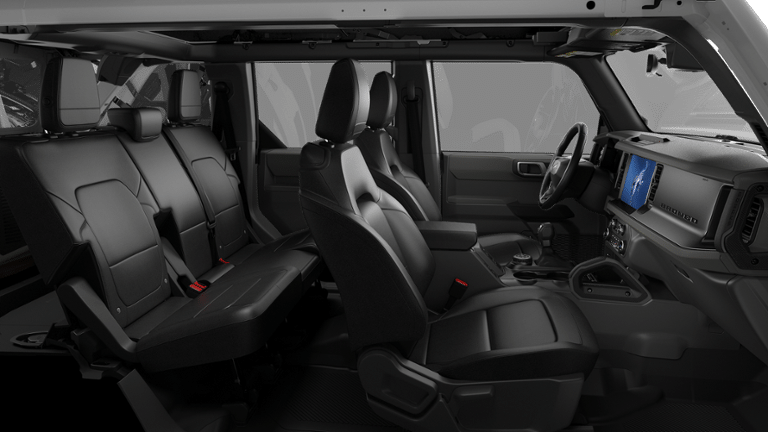 2-Door Intelligent Access with Lock/Unlock, 4-Wheel Disc Brakes, 7 Speakers, ABS brakes, Air Conditioning, Alloy wheels, AM/FM radio: SiriusXM with 360L, AM/FM Stereo, Ambient Footwell Lighting, Auto High-Beam Headlamps, Auto High-beam Headlights, Auxiliary Switches, Black Diamond Package, BLIS Blind Spot Information System, Brake assist, Carbonized Gray Molded-in-Color Hard Top, Cloth Bucket Seats, Compass, Connected Navigation, Delay-off headlights, Driver and Front Passenger Illuminated Sliding Visor Vanity Mirrors, Driver door bin, Driver vanity mirror, Dual front impact airbags, Dual front side impact airbags, Dual Smart Charging USB Ports, Dual-Zone Electronic Automatic Temperature Control, Electronic Stability Control, Emergency communication system: 911 Assist, Equipment Group 222A Mid Package, Exterior Parking Camera Rear, Ford Connectivity Package (1-Year Included), Front anti-roll bar, Front Bucket Seats, Front Center Armrest, Front reading lights, Front Row Heated Seats, Front wheel independent suspension, Fully automatic headlights, Heated door mirrors, Illuminated entry, Integrated roll-over protection, Lane-Keeping System, LED Fog Lamps, Low tire pressure warning, Occupant sensing airbag, Outside temperature display, Overhead airbag, Overhead console, Panic alarm, Passenger door bin, Passenger vanity mirror, Powder Coated Steel Front and Rear Bumpers, Power door mirrors, Power steering, Power windows, Pre-Collision Assist with Automatic Emergency Braking, Pro Power Onboard - 400W, Radio data system, Rear Parking Sensors, Rear-View Camera, Rear-Window Defroster and Washer, Remote keyless entry, Rock Rails, Security system, SiriusXM with 360L, Speed control, Split folding rear seat, Steering wheel mounted audio controls, SYNC 4, Tachometer, Telescoping steering wheel, Tilt steering wheel, Traction control, Trip computer, Variably intermittent wipers, Washout Capable Rubberized Flooring, Wheels: 17 Black High Gloss-Painted Steel, Wheels: 17 Carbonized Gray-Painted Aluminum.