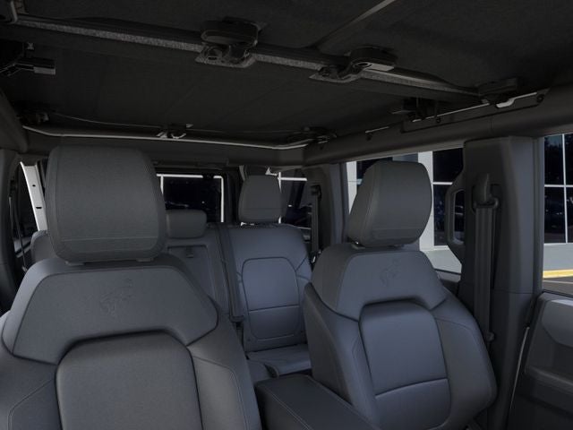 2-Door Intelligent Access with Lock/Unlock, 4-Wheel Disc Brakes, 7 Speakers, ABS brakes, Air Conditioning, Alloy wheels, AM/FM radio: SiriusXM with 360L, AM/FM Stereo, Ambient Footwell Lighting, Auto High-Beam Headlamps, Auto High-beam Headlights, Auxiliary Switches, Black Diamond Package, BLIS Blind Spot Information System, Brake assist, Carbonized Gray Molded-in-Color Hard Top, Cloth Bucket Seats, Compass, Connected Navigation, Delay-off headlights, Driver and Front Passenger Illuminated Sliding Visor Vanity Mirrors, Driver door bin, Driver vanity mirror, Dual front impact airbags, Dual front side impact airbags, Dual Smart Charging USB Ports, Dual-Zone Electronic Automatic Temperature Control, Electronic Stability Control, Emergency communication system: 911 Assist, Equipment Group 222A Mid Package, Exterior Parking Camera Rear, Ford Connectivity Package (1-Year Included), Front anti-roll bar, Front Bucket Seats, Front Center Armrest, Front reading lights, Front Row Heated Seats, Front wheel independent suspension, Fully automatic headlights, Hard Top Sound Deadening Headliner, Heated door mirrors, Illuminated entry, Integrated roll-over protection, Lane-Keeping System, LED Fog Lamps, Low tire pressure warning, Occupant sensing airbag, Outside temperature display, Overhead airbag, Overhead console, Panic alarm, Passenger door bin, Passenger vanity mirror, Powder Coated Steel Front and Rear Bumpers, Power door mirrors, Power steering, Power windows, Pre-Collision Assist with Automatic Emergency Braking, Pro Power Onboard - 400W, Radio data system, Rear Parking Sensors, Rear-View Camera, Rear-Window Defroster and Washer, Remote keyless entry, Rock Rails, Security system, SiriusXM with 360L, Speed control, Split folding rear seat, Steering wheel mounted audio controls, SYNC 4, Tachometer, Telescoping steering wheel, Tilt steering wheel, Traction control, Trip computer, Variably intermittent wipers, Washout Capable Rubberized Flooring, Wheels: 17 Black High Gloss-Painted Steel, Wheels: 17 Carbonized Gray-Painted Aluminum.