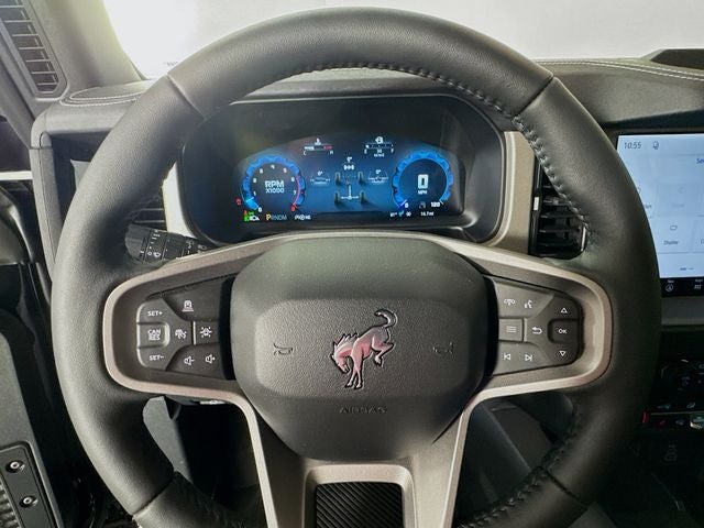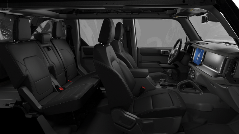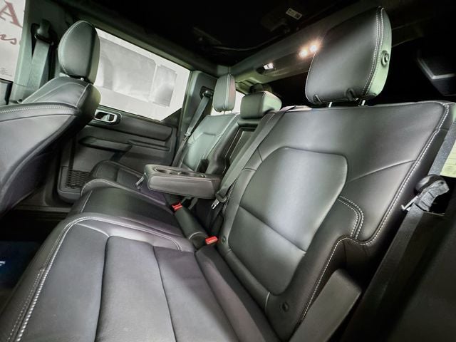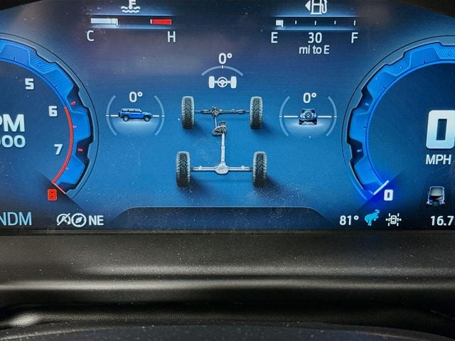 18 Bright Machined Aluminum Wheels, 3.73 Axle Ratio, 360-Degree Camera, 4-Wheel Disc Brakes, 7 Speakers, ABS brakes, Adaptive Cruise Control, Air Conditioning, Alloy wheels, AM/FM radio: SiriusXM with 360L, AM/FM Stereo, Auto High-beam Headlights, Auto-dimming Rear-View mirror, Automatic temperature control, Brake assist, Compass, Connected Navigation, Delay-off headlights, Driver door bin, Driver vanity mirror, Dual front impact airbags, Dual front side impact airbags, Electronic Stability Control, Emergency communication system: 911 Assist, Equipment Group 314A Lux Package, Evasive Steering Assist, Exterior Parking Camera Rear, Ford Connectivity Package (1-Year Included), Front anti-roll bar, Front Bucket Seats, Front Center Armrest, Front dual zone A/C, Front fog lights, Front Parking Sensors, Front reading lights, Front wheel independent suspension, Fully automatic headlights, Hard Top Sound Deadening Headliner, Heated door mirrors, Heated front seats, Heated Leather-Trimmed/Vinyl Bucket Seats, Heated steering wheel, Illuminated entry, Information on Demand Panel, Integrated roll-over protection, Leather Shift Knob, Low tire pressure warning, Navigation system: Connected Navigation, Occupant sensing airbag, Outside temperature display, Overhead airbag, Overhead console, Panic alarm, Passenger door bin, Passenger vanity mirror, Power door mirrors, Power driver seat, Power passenger seat, Power steering, Power windows, Radio data system, Rear seat center armrest, Rear-Window Defroster and Washer, Remote keyless entry, Security system, Shadow Black-Painted Hard Top, Sideview Mirrors, SiriusXM with 360L, Speed control, Split folding rear seat, Steering wheel mounted audio controls, SYNC 4, Tachometer, Telescoping steering wheel, Tilt steering wheel, Traction control, Trip computer, Variably intermittent wipers, Voltmeter.