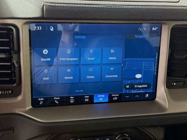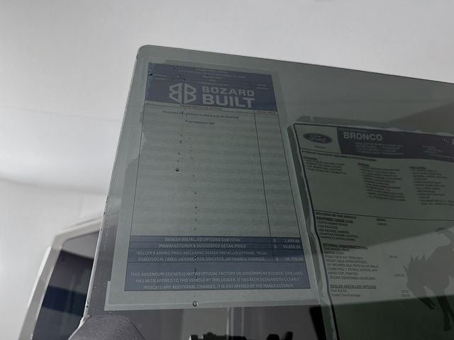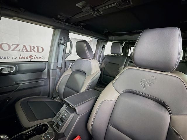 18 Bright Machined Aluminum Wheels, 3.73 Axle Ratio, 360-Degree Camera, 4-Wheel Disc Brakes, 7 Speakers, ABS brakes, Adaptive Cruise Control, Air Conditioning, Alloy wheels, AM/FM radio: SiriusXM with 360L, AM/FM Stereo, Auto High-beam Headlights, Auto-dimming Rear-View mirror, Automatic temperature control, Brake assist, Compass, Connected Navigation, Delay-off headlights, Driver door bin, Driver vanity mirror, Dual front impact airbags, Dual front side impact airbags, Electronic Stability Control, Emergency communication system: 911 Assist, Equipment Group 314A Lux Package, Evasive Steering Assist, Exterior Parking Camera Rear, Ford Connectivity Package (1-Year Included), Front anti-roll bar, Front Bucket Seats, Front Center Armrest, Front dual zone A/C, Front fog lights, Front Parking Sensors, Front reading lights, Front wheel independent suspension, Fully automatic headlights, Hard Top Sound Deadening Headliner, Heated door mirrors, Heated front seats, Heated Leather-Trimmed/Vinyl Bucket Seats, Heated steering wheel, Illuminated entry, Information on Demand Panel, Integrated roll-over protection, Leather Shift Knob, Low tire pressure warning, Navigation system: Connected Navigation, Occupant sensing airbag, Outside temperature display, Overhead airbag, Overhead console, Painted Hard Top, Panic alarm, Passenger door bin, Passenger vanity mirror, Power door mirrors, Power driver seat, Power passenger seat, Power steering, Power windows, Radio data system, Rear seat center armrest, Rear-Window Defroster and Washer, Remote keyless entry, Security system, Sideview Mirrors, SiriusXM with 360L, Speed control, Split folding rear seat, Steering wheel mounted audio controls, SYNC 4, Tachometer, Telescoping steering wheel, Tilt steering wheel, Traction control, Trip computer, Variably intermittent wipers, Voltmeter.