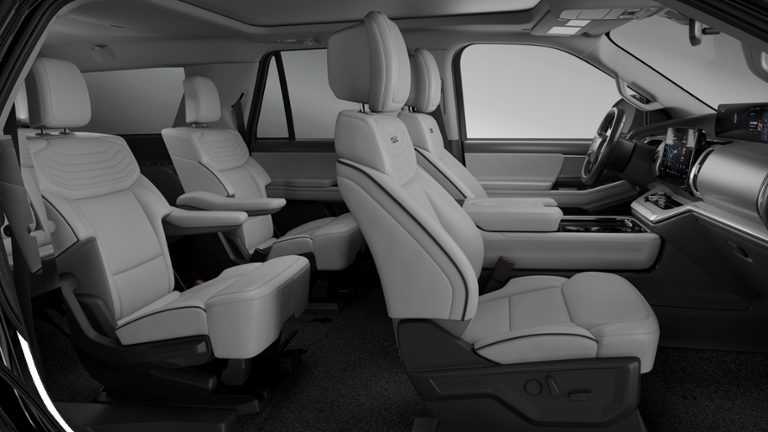 10 Speakers, 2nd Row Power-Folding Captain's Chairs, 3.73 Axle Ratio, 3rd row seats: split-bench, 4-Wheel Disc Brakes, ABS brakes, Air Conditioning, Alloy wheels, AM/FM radio: SiriusXM with 360L, Apple CarPlay/Android Auto, Auto High-beam Headlights, Auto-dimming door mirrors, Auto-dimming Rear-View mirror, Automatic temperature control, Black Headlamp Bezel with Satin Trim Applique, Black Onyx Painted Power Deployable Running Boards, BlueCruise (equipment + 1-Year + 90-Day Plan), BlueCruise Equipped (90-Day Trial), Brake assist, Bumpers: body-color, Carbon Black Front Bumper with Lit Grille Bar, Chrome Roof Rails with Black End Caps, Compass, Delay-off headlights, Driver door bin, Driver vanity mirror, Driver's Package, Dual front impact airbags, Dual front side impact airbags, Electronic Stability Control, Emergency communication system: 911 Assist, Engine Sound Enhancer, Equipment Group 600A Standard Package, Exterior Parking Camera Rear, Ford Connectivity Package (1-Time Purchase), Ford Connectivity Package (1-Year Included), Ford Digital Experience, Four wheel independent suspension, Front anti-roll bar, Front Bucket Seats, Front Center Armrest, Front Door Scuff Plates with Met Insert and Bright Rear, Front dual zone A/C, Front reading lights, Fully automatic headlights, Garage door transmitter, Genuine wood dashboard insert, Genuine wood door panel insert, Heated and Ventilated Leather Front Captain's Chairs, Heated door mirrors, Heated front seats, Heated rear seats, Heated steering wheel, High Flow Exhaust System, Illuminated entry, Intersection Assist, Leather steering wheel, Low tire pressure warning, Memory seat, Multicontour Active Motion Lthr Frnt Captains Chairs, Navigation System, Occupant sensing airbag, Outside temperature display, Overhead airbag, Overhead console, Panic alarm, Passenger door bin, Passenger vanity mirror, Platinum Ultimate Interior Package, Platinum Ultimate Package, Polished Stainless Steel Beltline Molding, Power door mirrors, Power driver seat, Power moonroof: Vista Roof, Power passenger seat, Power steering, Power Tilt/Telescopic Steering Wheel with Memory, Power windows, Radio data system, Radio: B&O Play Unleashed, Radio: B&O Sound System by Bang and Olufsen, Rain sensing wipers, Rear air conditioning, Rear anti-roll bar, Rear reading lights, Rear Seat Radio Controls, Rear Side Windows Laminated Glass, Rear window defroster, Rear window wiper, Reclining 3rd row seat, Remote keyless entry, Satin Aluminum Expedition Lettering on Side and Hood, Satin Aluminum Platinum Badge on Tailgate, Security system, Signature Grille Lighting, SiriusXM with 360L, Speed control, Speed-sensing steering, Speed-Sensitive Wipers, Split folding rear seat, Spoiler, Steering wheel memory, Steering wheel mounted audio controls, Tachometer, Telescoping steering wheel, Tilt steering wheel, Traction control, Trip computer, Turn signal indicator mirrors, Variably intermittent wipers, Ventilated front seats, Voltmeter, Wheels: 20 x 8.5 Ebony Bright Machined Aluminum, Wheels: 22 x 9.0 Ebony Bright Machined Face Aluminum, Wheels: 24 x 9.5 Tarnished Dark Metallic.
