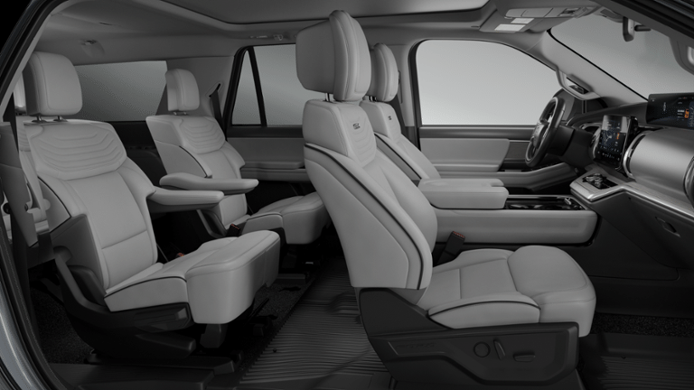 10 Speakers, 2nd Row Power-Folding Captain's Chairs, 3.73 Axle Ratio, 3rd row seats: split-bench, 4-Wheel Disc Brakes, ABS brakes, Air Conditioning, Alloy wheels, AM/FM radio: SiriusXM with 360L, Apple CarPlay/Android Auto, Auto High-beam Headlights, Auto-dimming door mirrors, Auto-dimming Rear-View mirror, Automatic temperature control, Black Headlamp Bezel with Satin Trim Applique, Black Onyx Painted Power Deployable Running Boards, BlueCruise (equipment + 1-Year + 90-Day Plan), BlueCruise Equipped (90-Day Trial), Brake assist, Bumpers: body-color, Carbon Black Front Bumper with Lit Grille Bar, Chrome Roof Rails with Black End Caps, Compass, Delay-off headlights, Driver door bin, Driver vanity mirror, Driver's Package, Dual front impact airbags, Dual front side impact airbags, Electronic Stability Control, Emergency communication system: 911 Assist, Engine Sound Enhancer, Equipment Group 600A Standard Package, Exterior Parking Camera Rear, Ford Connectivity Package (1-Time Purchase), Ford Connectivity Package (1-Year Included), Ford Digital Experience, Four wheel independent suspension, Front and 2nd Rows Floor Liners (tray Style), Front anti-roll bar, Front Bucket Seats, Front Center Armrest, Front Door Scuff Plates with Met Insert and Bright Rear, Front dual zone A/C, Front reading lights, Fully automatic headlights, Garage door transmitter, Genuine wood dashboard insert, Genuine wood door panel insert, Heated and Ventilated Leather Front Captain's Chairs, Heated door mirrors, Heated front seats, Heated rear seats, Heated steering wheel, High Flow Exhaust System, Illuminated entry, Intersection Assist, Leather steering wheel, Low tire pressure warning, Memory seat, Multicontour Active Motion Lthr Frnt Captains Chairs, Navigation System, Occupant sensing airbag, Outside temperature display, Overhead airbag, Overhead console, Panic alarm, Passenger door bin, Passenger vanity mirror, Platinum Ultimate Interior Package, Platinum Ultimate Package, Polished Stainless Steel Beltline Molding, Power door mirrors, Power driver seat, Power moonroof: Vista Roof, Power passenger seat, Power steering, Power Tilt/Telescopic Steering Wheel with Memory, Power windows, Radio data system, Radio: B&O Play Unleashed, Radio: B&O Sound System by Bang and Olufsen, Rain sensing wipers, Rear air conditioning, Rear anti-roll bar, Rear reading lights, Rear Seat Radio Controls, Rear Side Windows Laminated Glass, Rear window defroster, Rear window wiper, Reclining 3rd row seat, Remote keyless entry, Satin Aluminum Expedition Lettering on Side and Hood, Satin Aluminum Platinum Badge on Tailgate, Security system, Signature Grille Lighting, SiriusXM with 360L, Speed control, Speed-sensing steering, Speed-Sensitive Wipers, Split folding rear seat, Spoiler, Steering wheel memory, Steering wheel mounted audio controls, Tachometer, Telescoping steering wheel, Tilt steering wheel, Traction control, Trip computer, Turn signal indicator mirrors, Variably intermittent wipers, Ventilated front seats, Voltmeter, Wheels: 20 x 8.5 Ebony Bright Machined Aluminum, Wheels: 22 x 9.0 Ebony Bright Machined Face Aluminum, Wheels: 24 x 9.5 Tarnished Dark Metallic.