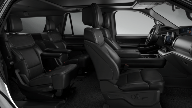 10 Speakers, 2nd Row Power-Folding Captain's Chairs, 3.73 Axle Ratio, 3rd row seats: split-bench, 4-Wheel Disc Brakes, ABS brakes, Air Conditioning, Alloy wheels, AM/FM radio: SiriusXM with 360L, Apple CarPlay/Android Auto, Auto High-beam Headlights, Auto-dimming door mirrors, Auto-dimming Rear-View mirror, Automatic temperature control, Black Belt Molding, Black Expedition Lettering on Hood, Black Headlamp Bezel with Ebony Trim Applique, Black Platinum Badge on Tailgate, Black Roof Rails, BlueCruise (equipment + 1-Year + 90-Day Plan), BlueCruise Equipped (90-Day Trial), Brake assist, Bumpers: body-color, Carbon Black Front Bumper/Fascia, Compass, Delay-off headlights, Driver door bin, Driver vanity mirror, Dual front impact airbags, Dual front side impact airbags, Electronic Stability Control, Emergency communication system: 911 Assist, Equipment Group 600A Standard Package, Exterior Parking Camera Rear, Ford Connectivity Package (1-Time Purchase), Ford Connectivity Package (1-Year Included), Ford Digital Experience, Four wheel independent suspension, Front anti-roll bar, Front Bucket Seats, Front Center Armrest, Front dual zone A/C, Front reading lights, Fully automatic headlights, Garage door transmitter, Genuine wood dashboard insert, Genuine wood door panel insert, Heated and Ventilated Leather Front Captain's Chairs, Heated door mirrors, Heated front seats, Heated rear seats, Heated steering wheel, Illuminated entry, Intersection Assist, Leather steering wheel, Low tire pressure warning, Memory seat, Navigation System, Occupant sensing airbag, Outside temperature display, Overhead airbag, Overhead console, Panic alarm, Passenger door bin, Passenger vanity mirror, Power door mirrors, Power driver seat, Power moonroof: Vista Roof, Power passenger seat, Power steering, Power Tilt/Telescopic Steering Wheel with Memory, Power windows, Radio data system, Radio: B&O Sound System by Bang and Olufsen, Rain sensing wipers, Rear air conditioning, Rear anti-roll bar, Rear reading lights, Rear Side Windows Laminated Glass, Rear window defroster, Rear window wiper, Reclining 3rd row seat, Remote keyless entry, Security system, Signature Grille Lighting, SiriusXM with 360L, Speed control, Speed-sensing steering, Speed-Sensitive Wipers, Split folding rear seat, Spoiler, Stealth Appearance Package, Steering wheel memory, Steering wheel mounted audio controls, Tachometer, Telescoping steering wheel, Tilt steering wheel, Traction control, Trip computer, Turn signal indicator mirrors, Variably intermittent wipers, Ventilated front seats, Voltmeter, Wheels: 20 x 8.5 Ebony Bright Machined Aluminum.