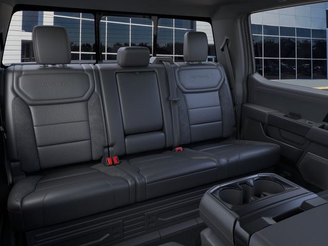 4WD, 14 Speakers, 17 Cast Aluminum Wheels, 4-Wheel Disc Brakes, ABS brakes, Adjustable pedals, Air Conditioning, Alloy wheels, AM/FM radio: SiriusXM with 360L, Auto High-beam Headlights, Auto tilt-away steering wheel, Auto-dimming door mirrors, Auto-dimming Rear-View mirror, Automatic temperature control, Brake assist, Bumpers: body-color, Carbon Fiber Interior Appliques, Compass, Delay-off headlights, Driver door bin, Driver vanity mirror, Driver's Side SecuriCode Keyless-Entry Keypad, Dual front impact airbags, Dual front side impact airbags, Dual Valve Shocks, Electronic Locking with 4.10 Axle Ratio, Electronic Stability Control, Emergency communication system: SYNC 4 911 Assist, Equipment Group 802A Raptor 37, Ford Connectivity Package (1-Year Included), Front anti-roll bar, Front Bucket Seats, Front Center Armrest, Front dual zone A/C, Front fog lights, Front reading lights, Front wheel independent suspension, Fully automatic headlights, Garage door transmitter, Heads-Up Display, Heated door mirrors, Heated front seats, Heated rear seats, Heated steering wheel, Illuminated entry, Internet access capable: 5G Modem - Ford Connectivity Package, Lane Departure Warning System, Leather steering wheel, Leather Trimmed Seats, Low tire pressure warning, Memory seat, Modular Front Bumper, Navigation system: Connected Navigation, Occupant sensing airbag, Outside temperature display, Overhead airbag, Overhead console, Panic alarm, Passenger door bin, Passenger vanity mirror, Pedal memory, Power door mirrors, Power driver seat, Power passenger seat, Power steering, Power windows, Radio data system, Radio: B&O Unleashed Sound System by Bang & Olufsen, Rain sensing wipers, Rear reading lights, Rear step bumper, Rear window defroster, RECARO Unique Leather Front Seats, Remote keyless entry, Security system, Speed control, Speed-sensing steering, Split folding rear seat, Steering wheel memory, Steering wheel mounted audio controls, SYNC 4 with Enhanced Voice Recognition, Tachometer, Telescoping steering wheel, Tilt steering wheel, Traction control, Trip computer, Turn signal indicator mirrors, Twin Panel Moonroof, Variably intermittent wipers, Ventilated front seats, Wheels: Raptor 37 Unique 17 Forged Cast, 4WD.