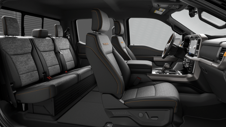 4WD, 4 Pickup Box Tie-Down Plates, 4-Wheel Disc Brakes, 8 Speakers, ABS brakes, Adjustable pedals, Air Conditioning, Alloy wheels, AM/FM radio: SiriusXM with 360L, Auto High-beam Headlights, Auto-dimming Rear-View mirror, Automatic temperature control, Bed Utility Package, BlueCruise (equipment + 1 Year + 90-Day Plan), Brake assist, Bumpers: body-color, Compass, Console Worksurface, Delay-off headlights, Driver door bin, Driver vanity mirror, Driver's Side SecuriCode Keyless-Entry Keypad, Dual front impact airbags, Dual front side impact airbags, Electronic Locking with 3.73 Axle Ratio, Electronic Stability Control, Emergency communication system: SYNC 4 911 Assist, Equipment Group 401A Standard, Ford Connectivity Package (1-Year Included), Ford Connectivity Package (one-Time Purchase - 7 Years), Front anti-roll bar, Front Bucket Seats, Front Center Armrest, Front dual zone A/C, Front fog lights, Front reading lights, Front wheel independent suspension, Fully automatic headlights, GVWR: 7,050 lbs Payload Package, Heated door mirrors, Heated front seats, Illuminated entry, Integrated Trailer Brake Controller, Internet access capable: 5G Modem - Ford Connectivity Package, LED Box Lighting, Low tire pressure warning, Mobile Office Package, Navigation system: Connected Navigation, Occupant sensing airbag, Outside temperature display, Overhead airbag, Overhead console, Panic alarm, Partitioned Lockable Rear Storage, Passenger door bin, Passenger vanity mirror, Power door mirrors, Power driver seat, Power passenger seat, Power steering, Power Tailgate, Power windows, Radio data system, Radio: B&O Sound System by Bang and Olufsen, Rear reading lights, Rear step bumper, Rear window defroster, Remote keyless entry, Security system, Speed control, Split folding rear seat, Steering wheel mounted audio controls, SYNC 4 with Enhanced Voice Recognition, Tachometer, Tailgate Step with Work Surface, Telescoping steering wheel, Tilt steering wheel, Tow/Haul Package, Traction control, Trip computer, Turn signal indicator mirrors, Unique Sport Cloth 40/Console/40 Power Front Seat, Variably intermittent wipers, Wheels: 18 Alloy with Dark Matte Finish, Wireless Charging, 4WD.