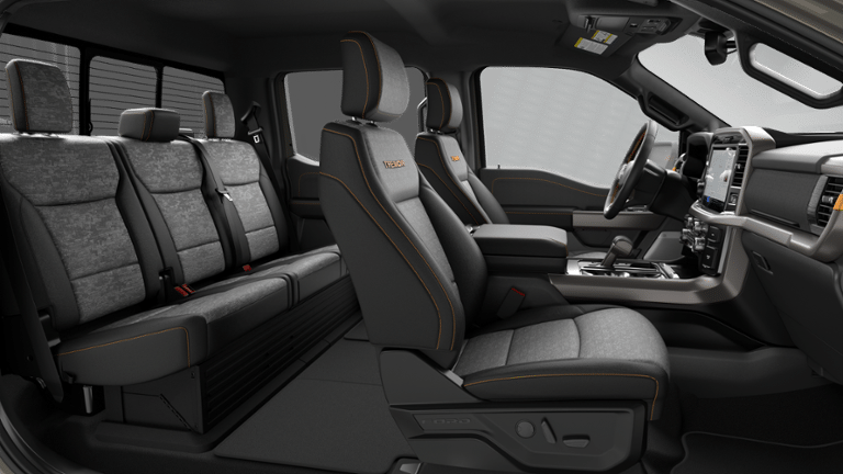4WD, 4 Pickup Box Tie-Down Plates, 4-Wheel Disc Brakes, 8 Speakers, ABS brakes, Adjustable pedals, Air Conditioning, Alloy wheels, AM/FM radio: SiriusXM with 360L, Auto High-beam Headlights, Auto-dimming Rear-View mirror, Automatic temperature control, Bed Utility Package, BlueCruise (equipment + 1 Year + 90-Day Plan), Brake assist, Bumpers: body-color, Compass, Console Worksurface, Delay-off headlights, Driver door bin, Driver vanity mirror, Driver's Side SecuriCode Keyless-Entry Keypad, Dual front impact airbags, Dual front side impact airbags, Electronic Locking with 3.73 Axle Ratio, Electronic Stability Control, Emergency communication system: SYNC 4 911 Assist, Equipment Group 401A Standard, Ford Connectivity Package (1-Year Included), Front anti-roll bar, Front Bucket Seats, Front Center Armrest, Front dual zone A/C, Front fog lights, Front reading lights, Front wheel independent suspension, Fully automatic headlights, GVWR: 7,050 lbs Payload Package, Heated door mirrors, Heated front seats, Illuminated entry, Integrated Trailer Brake Controller, Internet access capable: 5G Modem - Ford Connectivity Package, LED Box Lighting, Low tire pressure warning, Mobile Office Package, Navigation system: Connected Navigation, Occupant sensing airbag, Outside temperature display, Overhead airbag, Overhead console, Panic alarm, Partitioned Lockable Rear Storage, Passenger door bin, Passenger vanity mirror, Power door mirrors, Power driver seat, Power passenger seat, Power steering, Power Tailgate, Power windows, Radio data system, Radio: B&O Sound System by Bang and Olufsen, Rear reading lights, Rear step bumper, Rear window defroster, Remote keyless entry, Security system, Speed control, Split folding rear seat, Steering wheel mounted audio controls, SYNC 4 with Enhanced Voice Recognition, Tachometer, Tailgate Step with Work Surface, Telescoping steering wheel, Tilt steering wheel, Tow/Haul Package, Traction control, Trip computer, Turn signal indicator mirrors, Unique Sport Cloth 40/Console/40 Power Front Seat, Variably intermittent wipers, Wheels: 18 Alloy with Dark Matte Finish, Wireless Charging, 4WD.