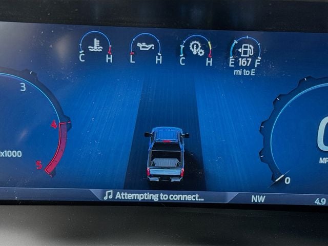 4WD, 14 Speakers, 4-Wheel Disc Brakes, 5th Wheel/Gooseneck Hitch Prep Package, ABS brakes, Adjustable pedals, Air Conditioning, Alloy wheels, AM/FM radio: SiriusXM with 360L, Auto High-beam Headlights, Auto tilt-away steering wheel, Auto-dimming Rear-View mirror, Automatic temperature control, Brake assist, Compass, Delay-off headlights, Driver door bin, Driver vanity mirror, Dual front impact airbags, Dual front side impact airbags, Electronic Stability Control, Emergency communication system: SYNC 4 911 Assist, Flow-Through Console, Ford Connectivity Package (1-Year Included), Front and Rear Wheel Well Liners, Front anti-roll bar, Front Bucket Seats, Front Center Armrest, Front dual zone A/C, Front fog lights, Front reading lights, Fully automatic headlights, FX4 Off-Road Package, Garage door transmitter, Heads-Up Display, Heated door mirrors, Heated front seats, Heated rear seats, Heated steering wheel, Hill Descent Control, Illuminated entry, Internet access capable: 5G Modem - Ford Connectivity Package, Leather steering wheel, LED Roof Clearance Lights, Low tire pressure warning, Memory seat, Navigation system: Connected Navigation, Off-Road Specifically Tuned Shock Absorbers, Order Code 710A, Outside temperature display, Overhead airbag, Overhead console, Panic alarm, Passenger door bin, Passenger vanity mirror, Pedal memory, Power door mirrors, Power driver seat, Power passenger seat, Power steering, Power windows, Radio: B&O Unleashed Sound System by Bang & Olufsen, Rain sensing wipers, Rear reading lights, Rear seat center armrest, Rear step bumper, Rear window defroster, Remote keyless entry, SecuriCode Keyless Entry Keypad (driver's Side), Security system, SiriusXM with 360L, Speed control, Split folding rear seat, Steering wheel memory, Steering wheel mounted A/C controls, Steering wheel mounted audio controls, SYNC 4 with Enhanced Voice Recognition, Tachometer, Telescoping steering wheel, Tilt steering wheel, Traction control, Trip computer, Turn signal indicator mirrors, Twin Panel Power Moonroof, Unique FX4 Off-Road Box Decal, Unique King Ranch Leather 40/Console/40 Seats, Upfitter Switches (6), Variably intermittent wipers, Ventilated front seats, Wheels: 20 Bright Machined Aluminum, 4WD.