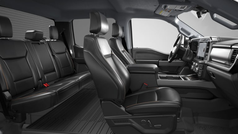 4WD, 190 Amp Alternator, 250 Amp Alternator, 4-Wheel Disc Brakes, 5th Wheel/Gooseneck Hitch Prep Package, 6 Ebony Black Angular Running Boards, 8 Speakers, ABS brakes, Adjustable pedals, Air Conditioning, All-Weather Floor Mats, Alloy wheels, AM/FM radio: SiriusXM with 360L, Auto High-beam Headlights, Auto-dimming Rear-View mirror, Automatic temperature control, Black Appearance Package, Black Painted Front Grille Surround, BLIS with Cross-Traffic Alert, Body Color Front and Rear Bumpers, Brake assist, Bumpers: chrome, Compass, Delay-off headlights, Driver door bin, Driver vanity mirror, Dual front impact airbags, Dual front side impact airbags, Ebony Black Painted Mirror Caps, Electronic Stability Control, Emergency communication system: SYNC 4 911 Assist, Flow-Through Console, Ford Connectivity Package (1-Year Included), Front ActiveX Trimmed 40/Console/40 Seats, Front anti-roll bar, Front Bucket Seats, Front Center Armrest, Front dual zone A/C, Front fog lights, Front reading lights, Fully automatic headlights, FX4 Off-Road Package, Garage door transmitter, Heated door mirrors, Heated front seats, Heated rear seats, Heated steering wheel, Hill Descent Control, Illuminated entry, Internet access capable: 5G Modem - Ford Connectivity Package, Low tire pressure warning, Memory seat, Navigation system: Connected Navigation, Off-Road Specifically Tuned Shock Absorbers, Order Code 618A, Outside temperature display, Overhead airbag, Overhead console, Panic alarm, Passenger door bin, Passenger vanity mirror, Pedal memory, Power door mirrors, Power driver seat, Power passenger seat, Power steering, Power windows, Power-Sliding Rear-Window with Defrost, Privacy Glass, Radio: B&O Sound System by Bang and Olufsen, Rain sensing wipers, Rear Parking Sensors, Rear reading lights, Rear seat center armrest, Rear step bumper, Rear window defroster, Remote keyless entry, SecuriCode Keyless Entry Keypad (driver's Side), Security system, SiriusXM with 360L, Speed control, Split folding rear seat, Steering wheel mounted audio controls, SYNC 4 with Enhanced Voice Recognition, Tachometer, Tailgate Step and Handle, Telescoping steering wheel, Tilt steering wheel, Traction control, Trip computer, Turn signal indicator mirrors, Unique FX4 Off-Road Box Decal, Upfitter Switches (6), Variably intermittent wipers, Ventilated front seats, Wheels: 18 Bright Machined and Carbonized Gray Aluminum, 4WD.