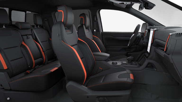 4WD, 10 Speakers, 4-Wheel Disc Brakes, 4.27 Axle Ratio, ABS brakes, Air Conditioning, Alloy wheels, AM/FM radio: SiriusXM with 360L, Auto High-beam Headlights, Auto-dimming Rear-View mirror, Automatic temperature control, Black SecuriCode Wireless Keyless Entry Keypad (DIO), Brake assist, Compass, Delay-off headlights, Driver door bin, Driver vanity mirror, Dual front impact airbags, Dual front side impact airbags, Electronic Stability Control, Emergency communication system: SYNC 4 911 Assist, Equipment Group 800A Standard, Front and Rear Splash Guards/Mud Flaps, Front anti-roll bar, Front Bucket Seats, Front Center Armrest, Front dual zone A/C, Front fog lights, Front reading lights, Front wheel independent suspension, Fully automatic headlights, Garage door transmitter, Heated door mirrors, Heated front seats, Heated steering wheel, Illuminated entry, Leather Shift Knob, Leather steering wheel, Leather-Trimmed Front Heated Bucket Seats, Low tire pressure warning, Memory seat, Navigation system: Connected Navigation, Occupant sensing airbag, Outside temperature display, Overhead airbag, Overhead console, Panic alarm, Passenger door bin, Passenger vanity mirror, Power door mirrors, Power driver seat, Power passenger seat, Power steering, Power windows, Radio: B&O Sound System by Bang and Olufsen, Rain sensing wipers, Raptor Exterior Graphics, Rear reading lights, Rear seat center armrest, Rear step bumper, Rear window defroster, Remote keyless entry, Security system, SiriusXM with 360L and 3-Month Trial Subscription, Speed control, Speed-sensing steering, Steering wheel mounted audio controls, SYNC 4A, Telescoping steering wheel, Tilt steering wheel, Traction control, Trip computer, Turn signal indicator mirrors, Variably intermittent wipers, Voltmeter, Wheels: 17 Inch Gray-Painted Aluminum Alloy, 4WD.