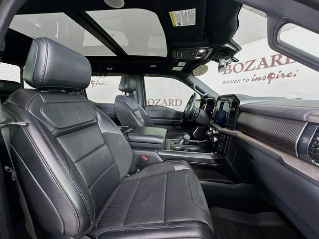 The Raptor's premium features continue inside, where you'll find a heated steering wheel, wireless charging pad, and the premium B&O Unleashed Sound System by Bang & Olufsen. The twin-panel moonroof and Raptor-specific interior accents add an extra touch of style and exclusivity.