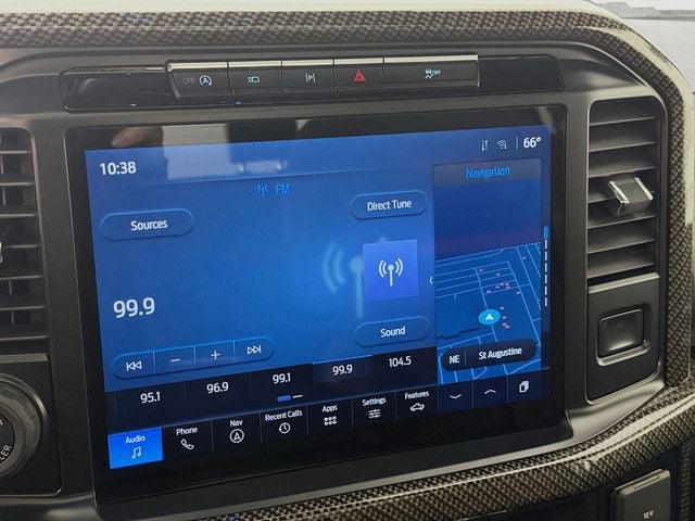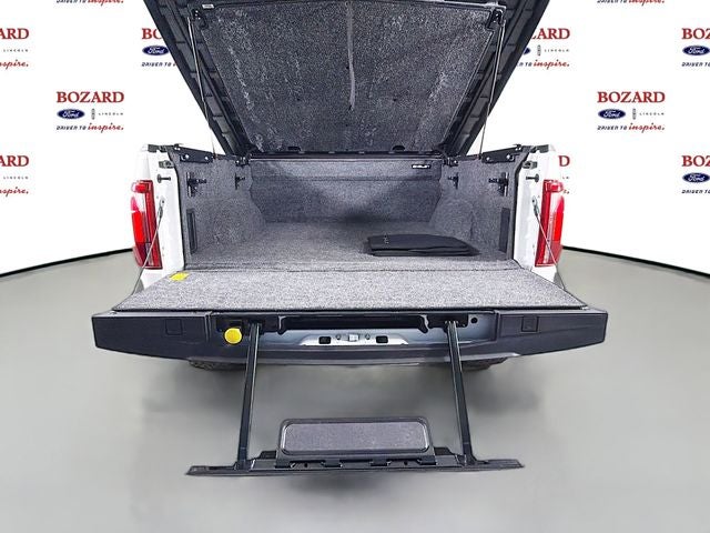 The Lariat trim level elevates this F-150 with a host of premium features, including the luxurious B&O Unleashed Sound System by Bang & Olufsen, a console worksurface for enhanced productivity, and a partitioned lockable rear storage for secure cargo management. The twin panel moonroof and Lariat Black Appearance Package add a touch of style and sophistication.