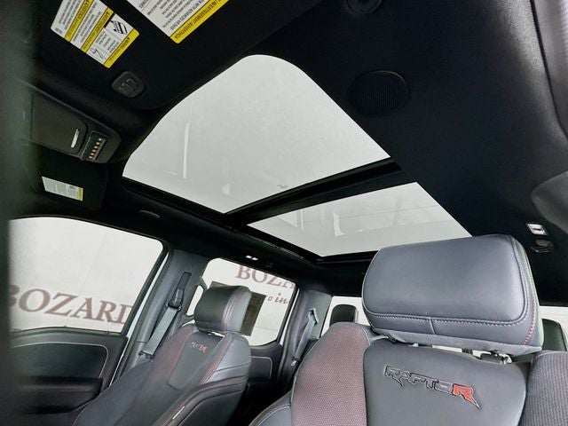 Step inside the Raptor R, and you'll be surrounded by a cabin that exudes refinement and attention to detail. The interior features code orange stitching, unique carbon fiber accents, and RECARO front seats with code orange stitching for a truly premium experience. The twin-panel moonroof allows you to take in the great outdoors, while the B&O Unleashed sound system by Bang & Olufsen delivers an unparalleled audio experience.